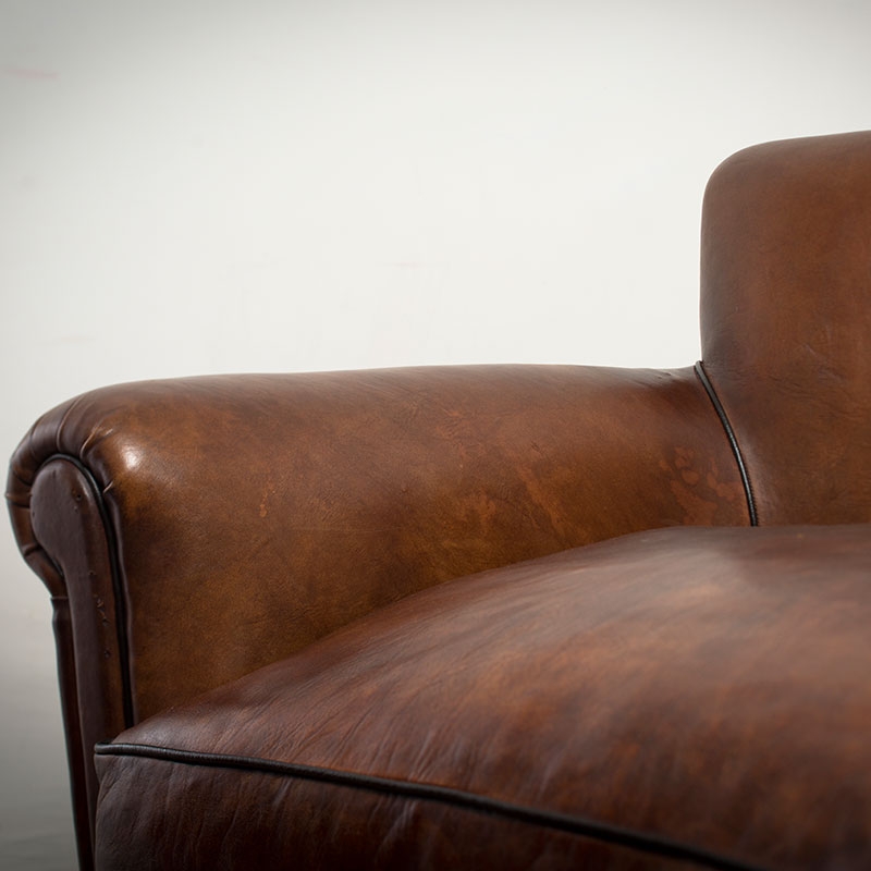 Canapé club deux places en cuir de mouton vieilli (basane).